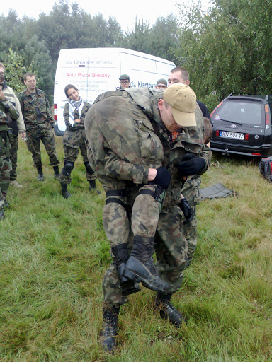 Ciąg dalszy ćwiczeń przebiegał na niewielkiej polanie za terenem wojskowym. Przećwiczyliśmy reakcję na kontakt z różnych stron, odrywanie w różnych kierunkach, obronę okrężną i niektóre szyki. Ćwiczenia pokazały, że wiele jeszcze należy przepracować, by odruchy poszczególnych strzelców były na tyle automatyczne, aby dawały szansę na wyjście z opresji bez szwanku.